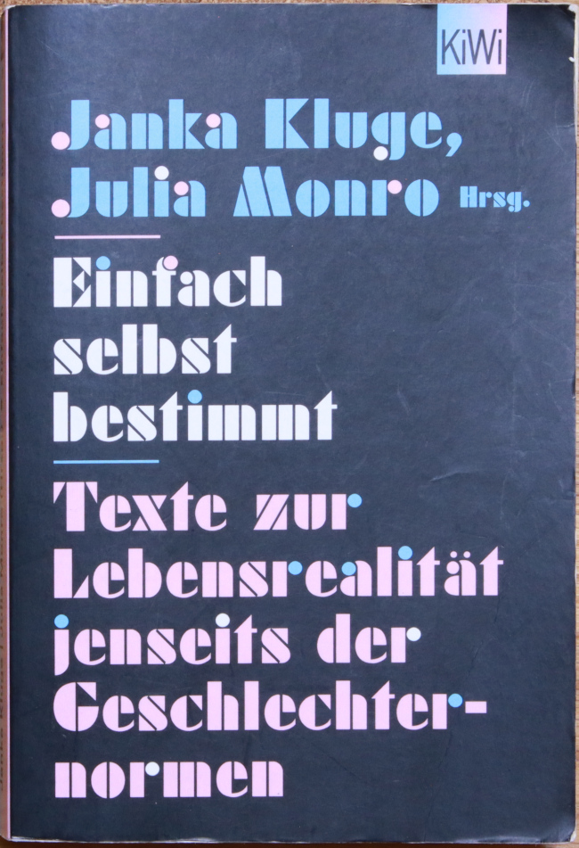 | 123 | Einfach selbt bestimmt. Texte zur Lebensrealität jenseits der Geschlechternormen![]() | Janka Kluge, Julia Monro https://www.kiwi-verlag.de | 978 3 462 00585 1 | 15,00 € |
