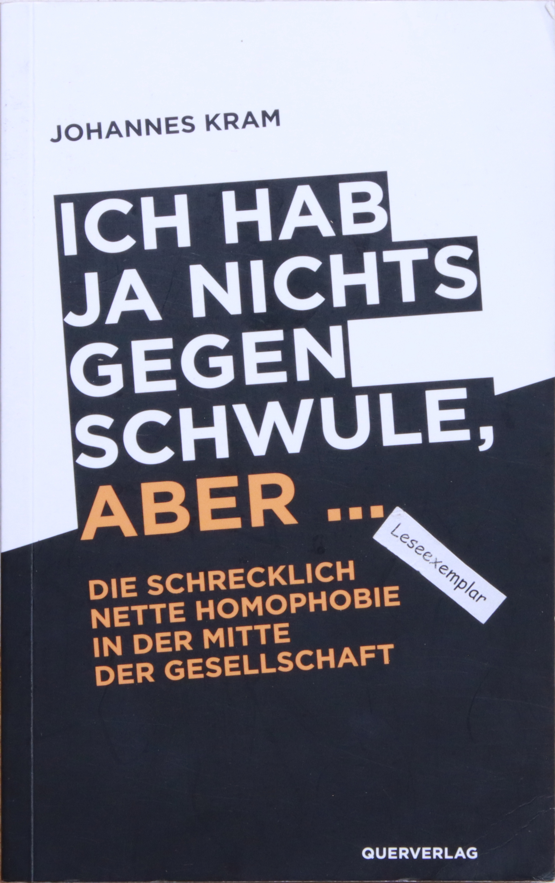 | 129 | Ich hab ja nichts gegen Schwule, aber ...: Die schrecklich nette Homophobie in der Mitte der Gesellschaft![]() | Johannes Kram Querverlag | 978 3 89656 260 9 | 9,54 € |
