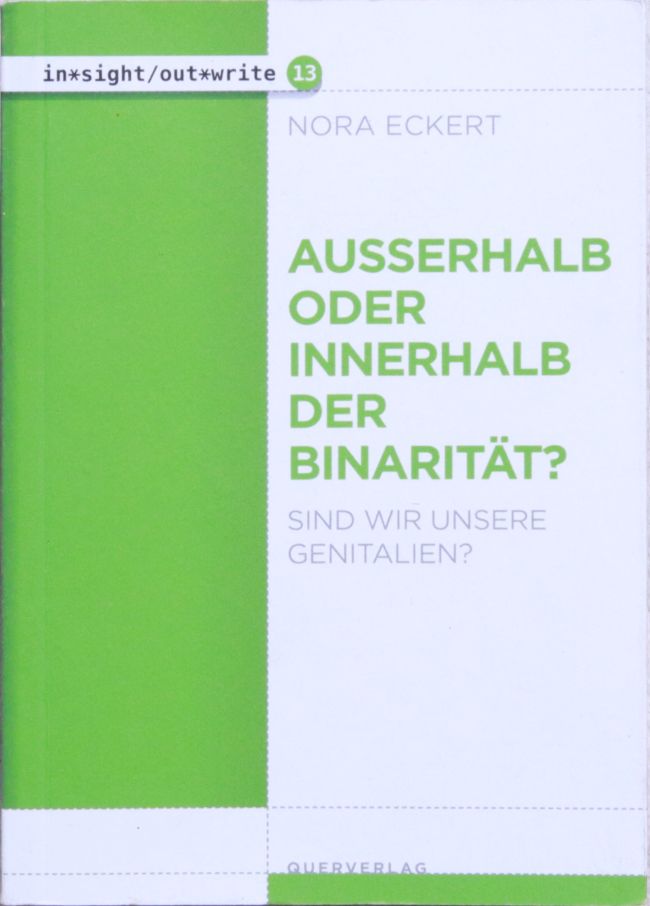 | 114 | Außerhalb oder innerhalb der Binärität? Sind wir unsere Genitlien![]() | Nora Eckert Querverlag | 978 3 89656 337 8 | 8,00 € |
